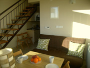 double sofa bed, dining table, chairs and TV/DVD. There is a mezzanine,